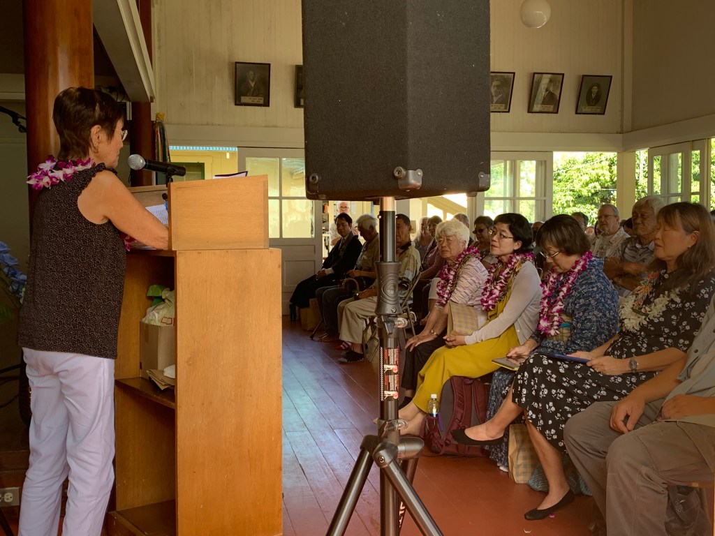 Before the gravesite service, a special introduction was held inside to recognize special guests of honor who traveled from Japan, the U.S. mainland, and the outer islands be at the service. Some of the guests included relatives of Katsu Goto, which included Toyoko Saeki, Akemi Ishizu, Dr. Katherine Wong, Bruce Wong and Margaret Kent Wong that traveled from afar. Akiko Furutani, who serves on the Board of Directors for the Goto of Hiroshima Foundation was also present.
