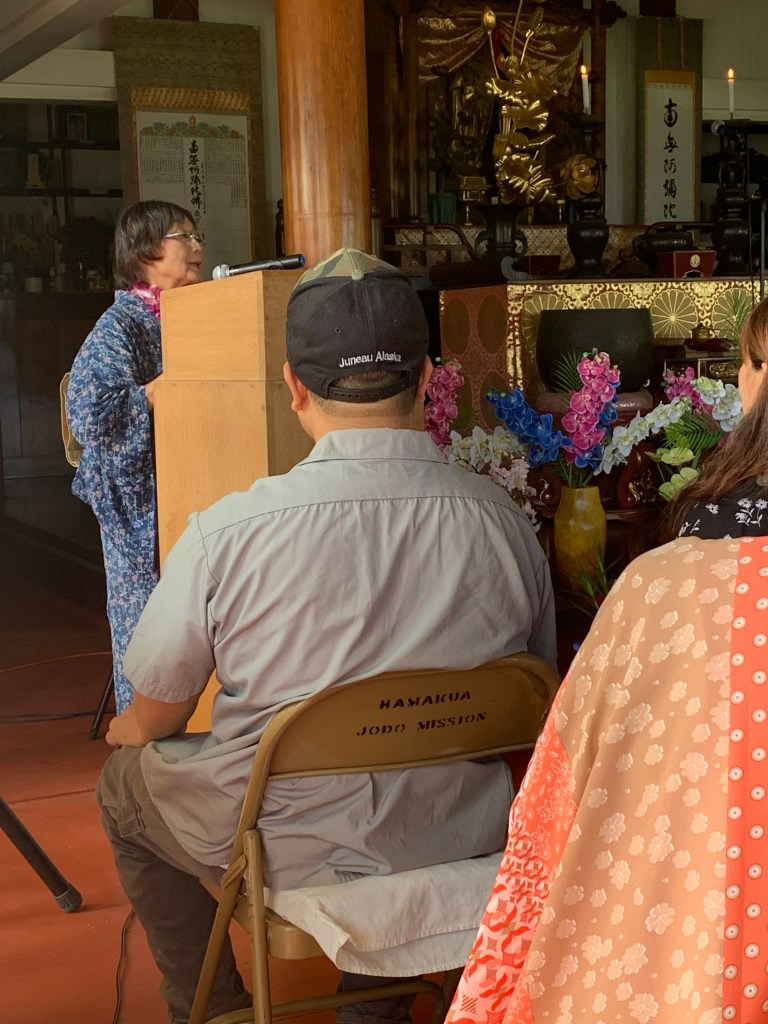 A heartfelt performance by cast members of the musical “Peace on Your Wings,” followed before the outdoor service started, officiated by guest minister Rev. Masanari Yamagashi of the Honokaa, Kohala, Waimea and Paauilo Hongwanji Missions.
